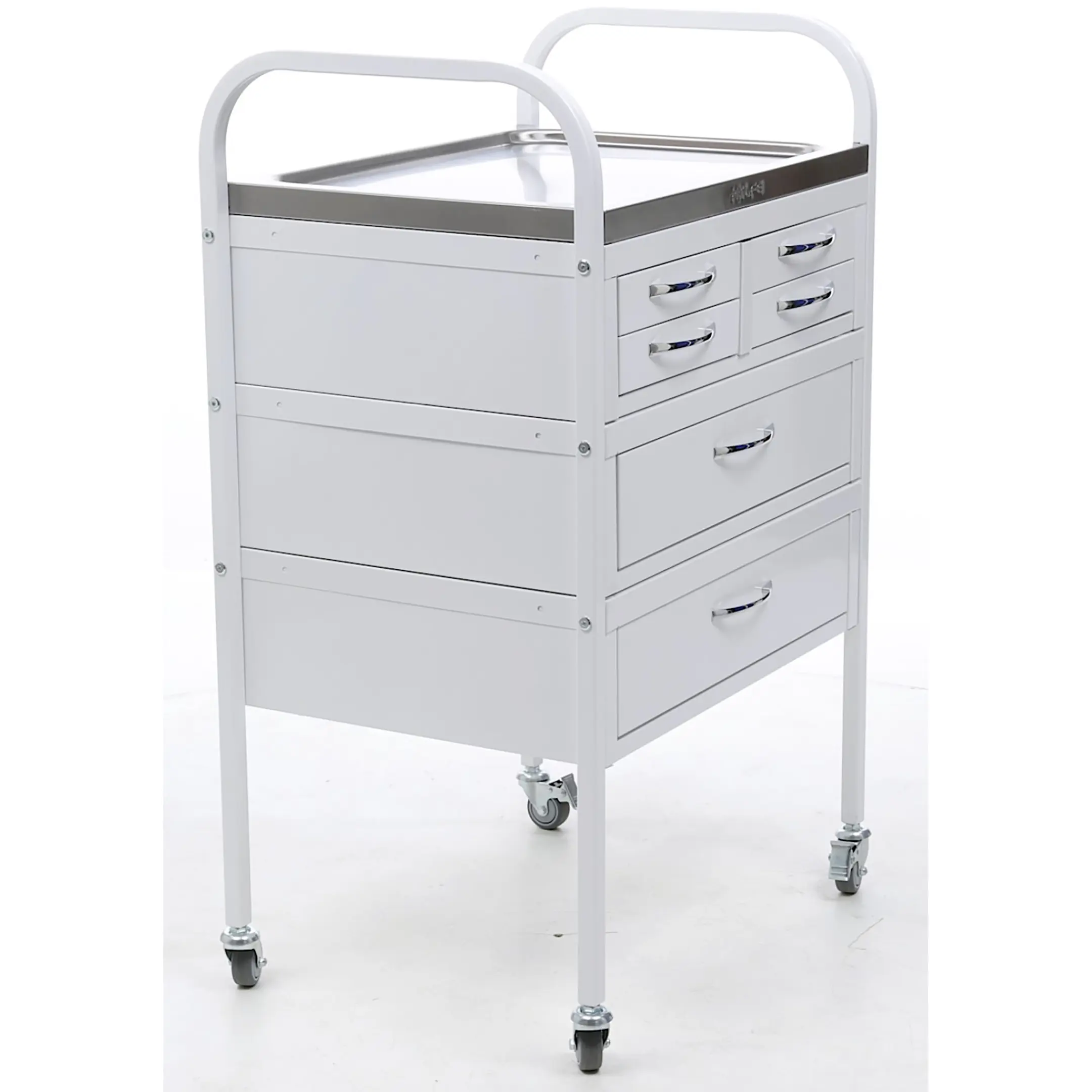• столик манипуляционный имеет 4 колеса из не маркой серой резины D= 50 мм, два из которых снабжены тормозом;