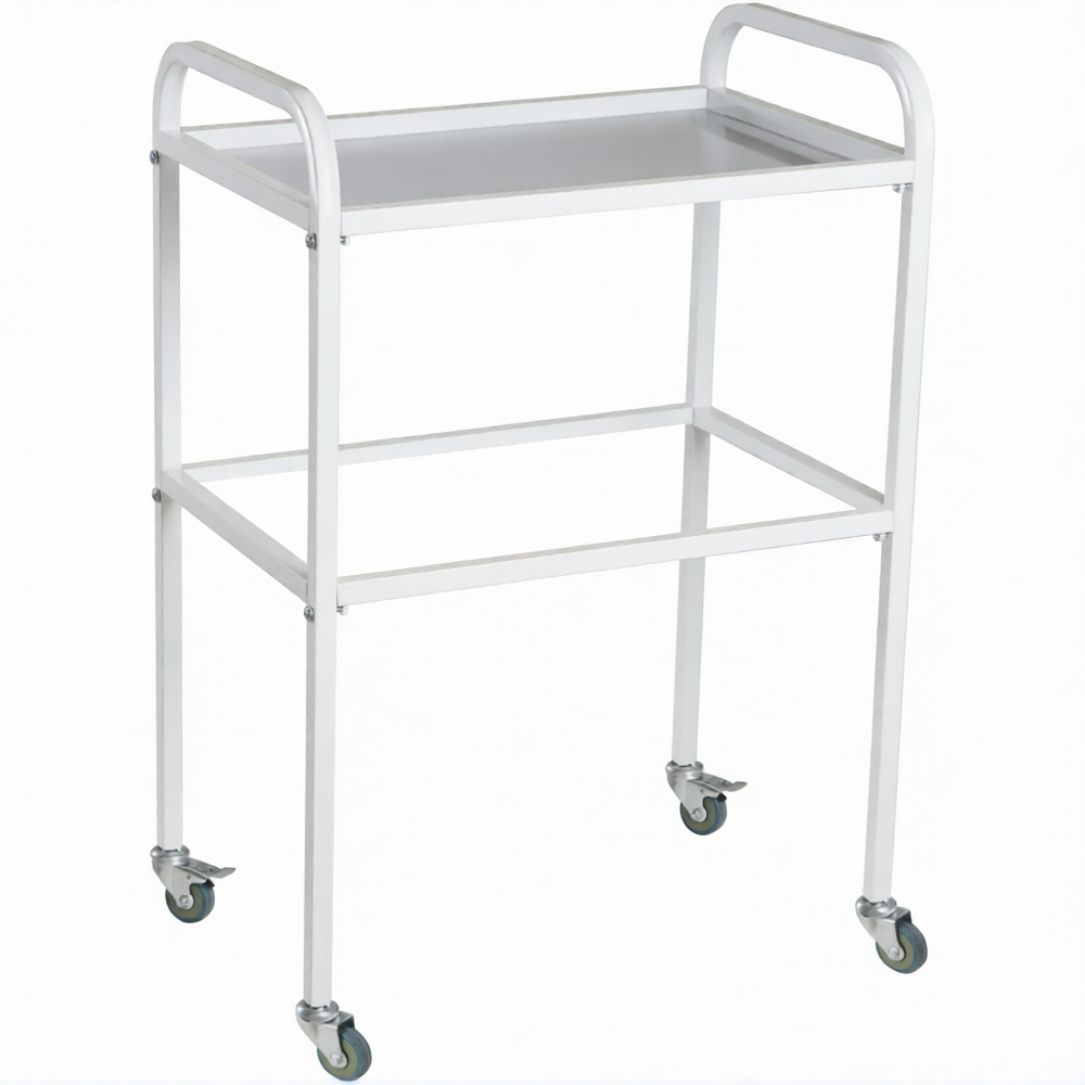 Стол медицинский инструментальный СМИ-02 (полки нерж., колёса серая резина) предназначен для размещения инструмента, лекарственных препаратов и приборов.