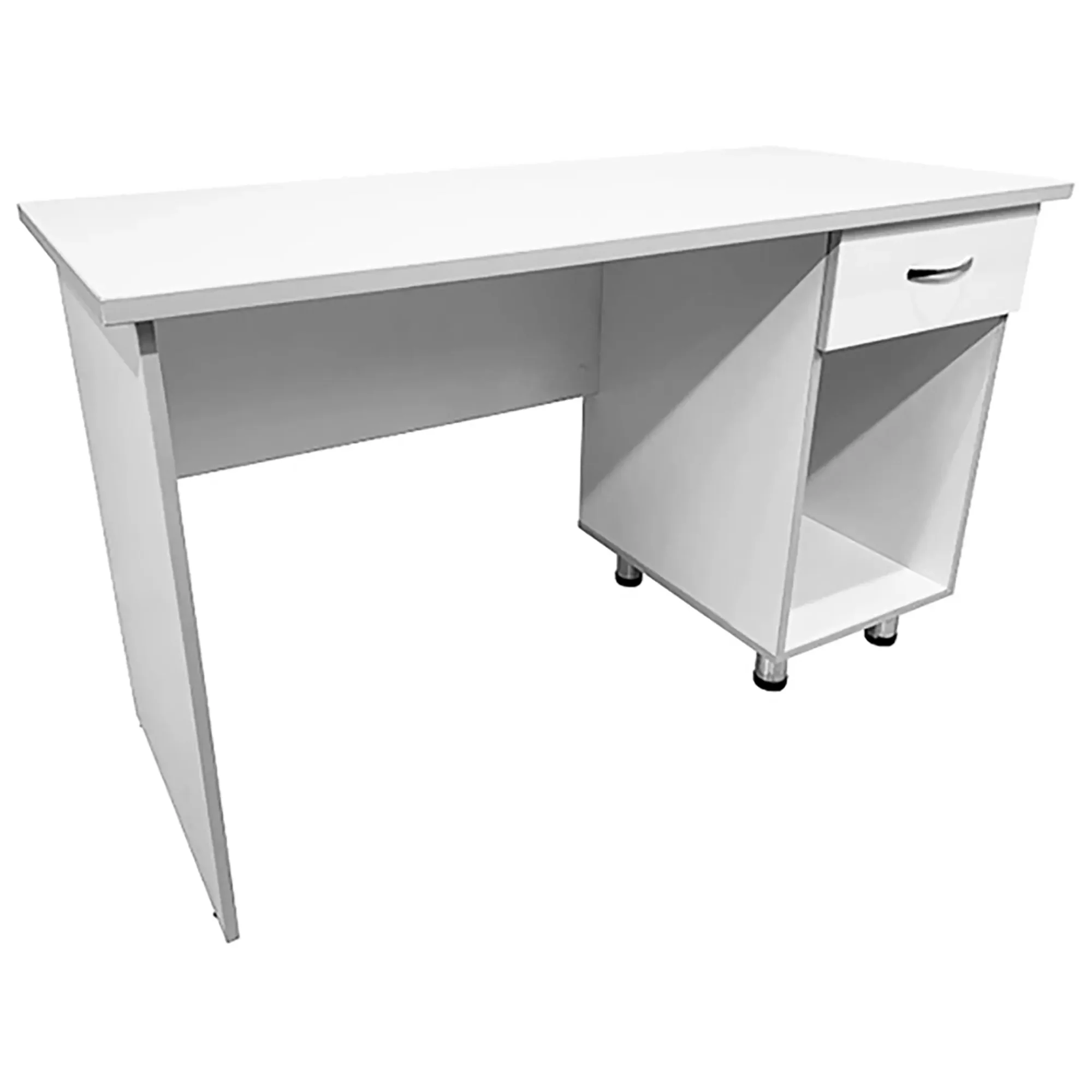• Боковая тумба оборудована выдвижным ящиком и нишей, что дает возможность удобного хранения необходимых материалов и документов, обеспечивая порядок и организованность на рабочем месте.