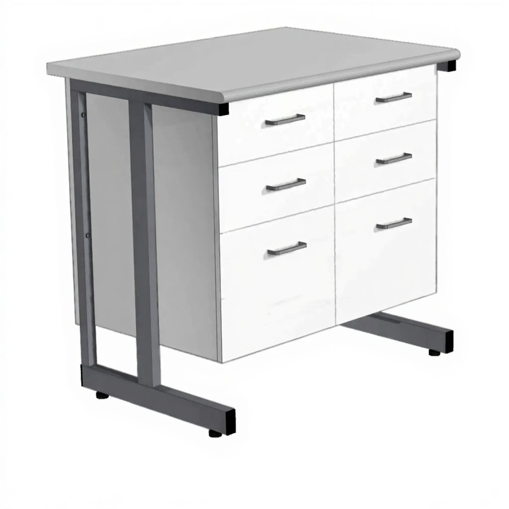 Стол-тумба СЛ-211/2.3 «Премиум» с металлическим корпусом — это функциональное решение премиального уровня для оснащения рабочих зон в лабораториях, медицинских кабинетах и исследовательских центрах. Модель сочетает усиленный металлический каркас, полностью металлическую тумбу из стального листа, химически стойкую столешницу и систему хранения с шестью выдвижными ящиками.