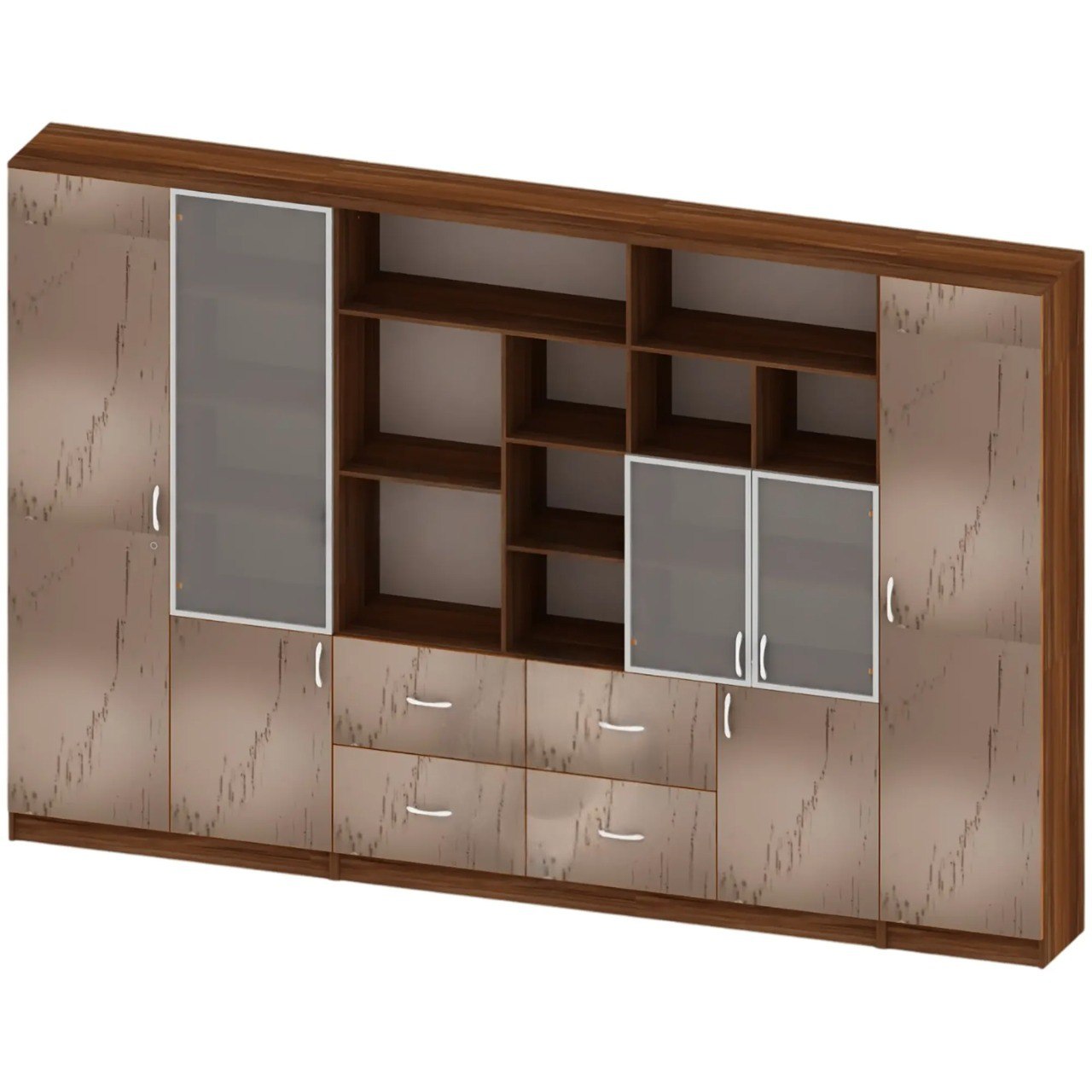 - Полуоткрытая конструкция — сочетание открытых секций для быстрого доступа к часто используемым документам и закрытого отсека для хранения материалов, требующих защиты.