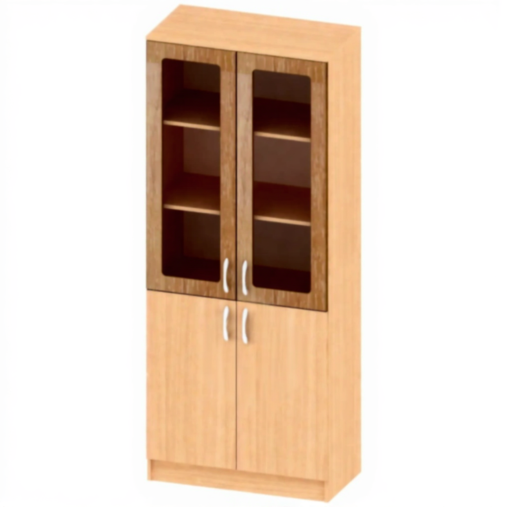 Шкаф со стеклом МБ-ШК-17-1 — это эстетичное и функциональное решение для хранения книг, документов, экспонатов и других предметов в образовательных, офисных и административных учреждениях. Модель сочетает в себе качественные материалы: корпус из ЛДСП, элементы из МДФ с отделкой пленкой ПВХ и стеклянные вставки, что придает шкафу современный и привлекательный внешний вид.