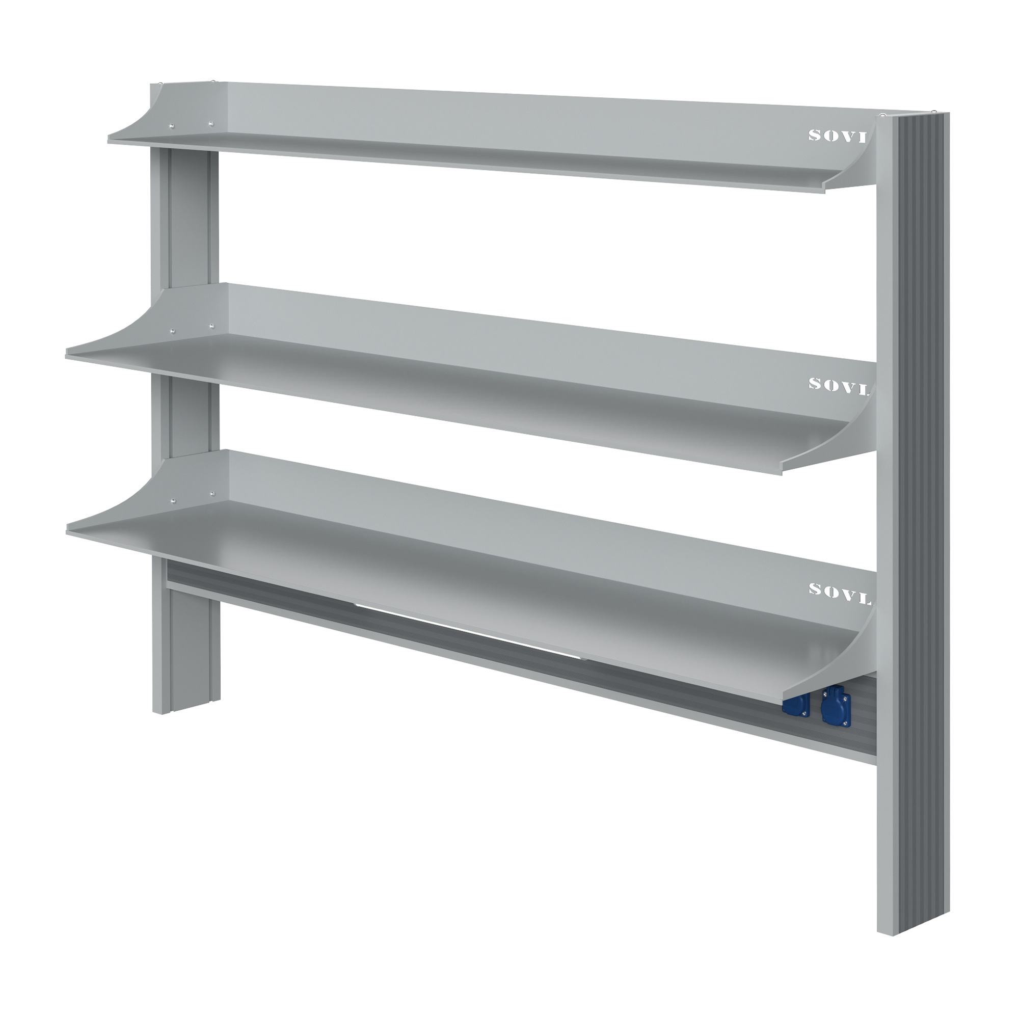 - Усиленная конструкция для приборов — три металлические полки глубиной 400 мм (2 шт.) и 300 мм (1 шт.) с высокими бортами обеспечивают надежное размещение оборудования.