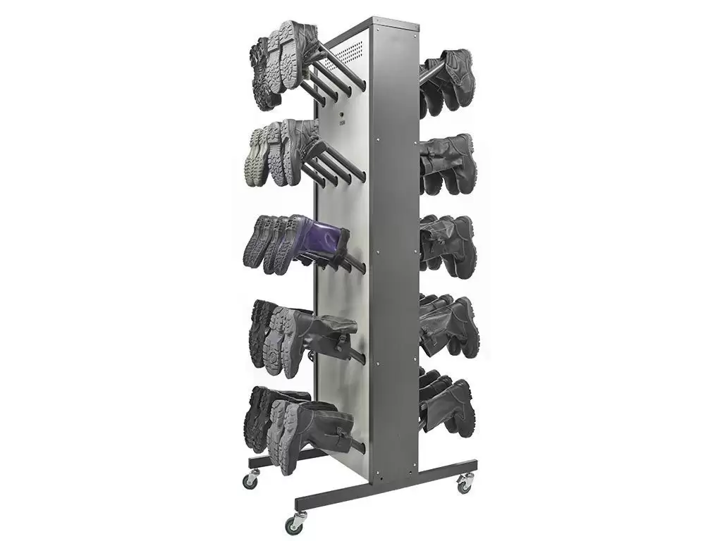 - Универсальность и удобство использования — модель подходит для различных типов помещений и может быть легко установлена в раздевалках, коридорах или специальных сушильных зонах. Удобная конструкция обеспечивает легкий доступ к обуви.