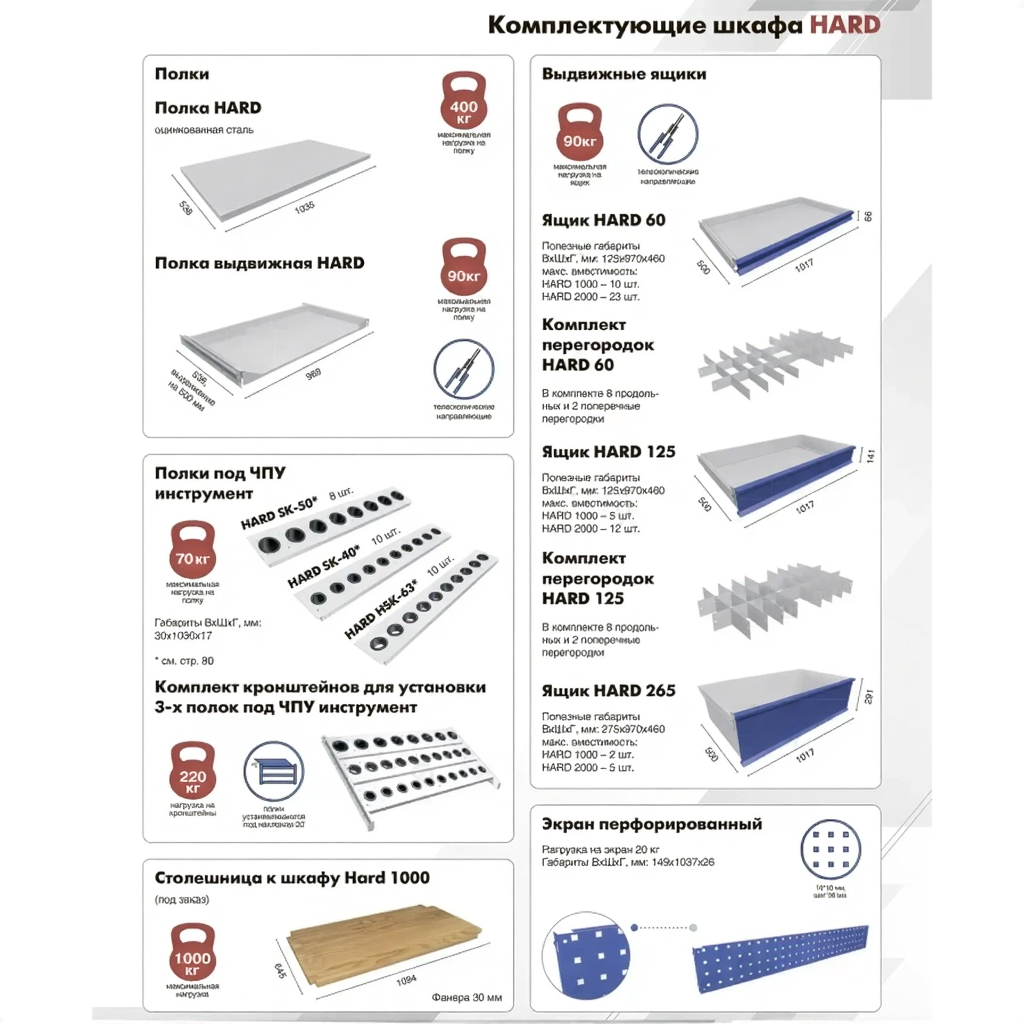 Модульный шкаф HARD 2000-062000 — это профессиональное, универсальное и трансформируемое решение для организации хранения, систематизации и защиты инструмента, оснастки, приборов и материалов на производственных участках, в мастерских, складах и на промышленных объектах. Модель представляет собой основу модульной системы хранения серии «HARD», где обозначение указывает на его базовые габариты и возможность комплектации различными элементами (ящиками, полками, дверцами). Конструкция разработана для создания индивидуальных конфигураций под любые задачи, обеспечивая порядок, быстрый доступ и максимальную сохранность инвентаря.
