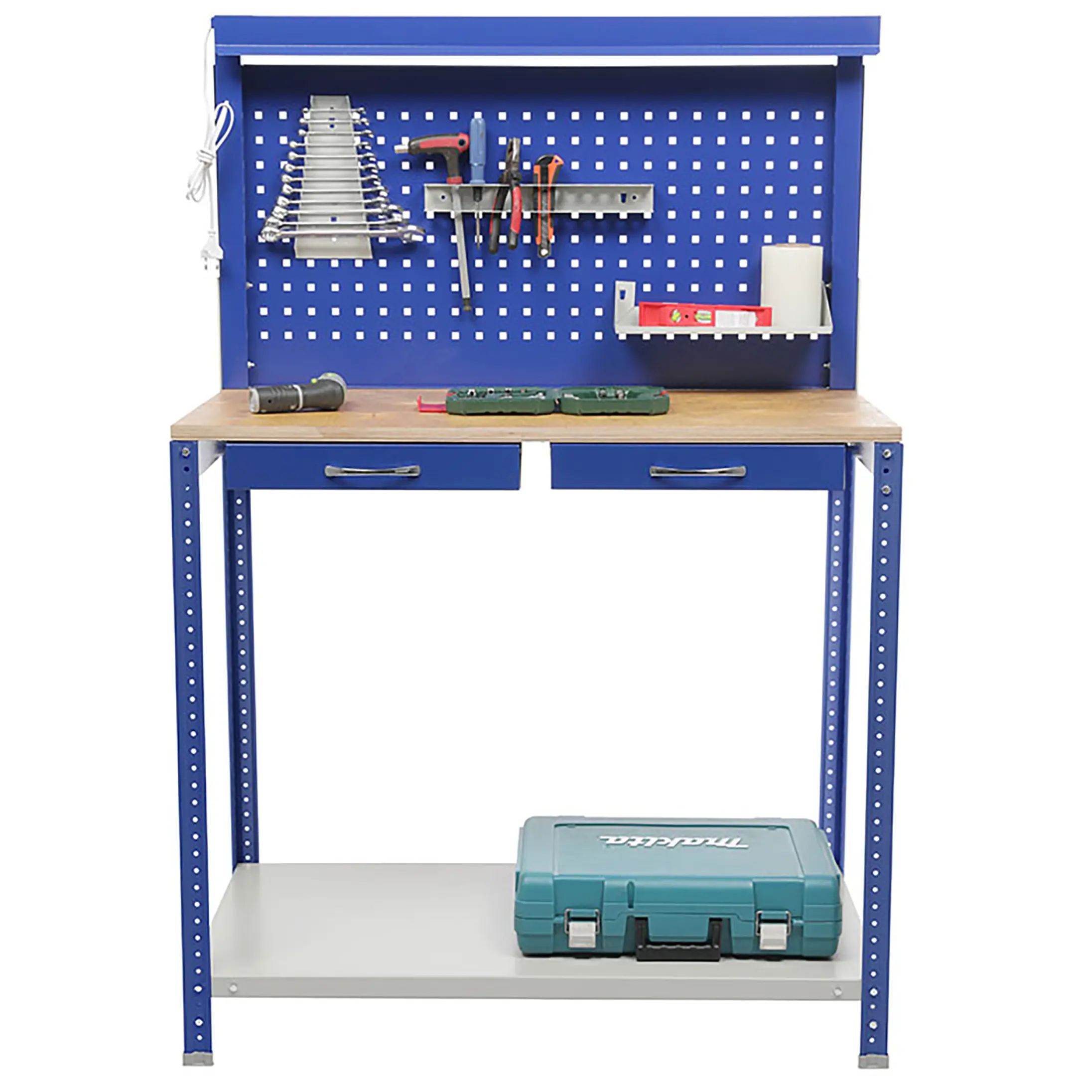 Верстак GARAGE SET 1 — это надежное и функциональное решение для организации отдельного рабочего места в гараже или на балконе и хранения инструментов, материалов, разнообразных приспособлений и оснастки. Главными достоинствами этой модели можно назвать быструю и лёгкую сборку, а также удобный способ поставки: весь комплект в одной коробке.