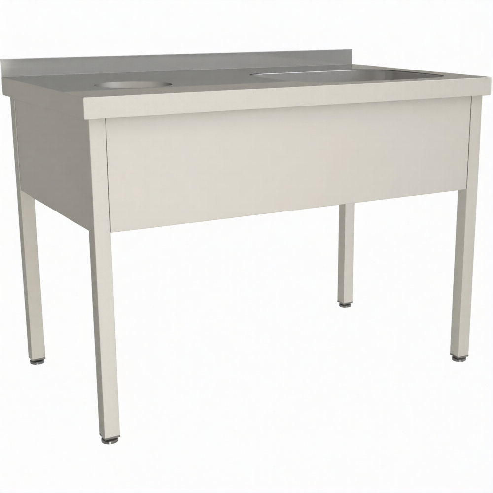 Стол для сбора пищевых отходов с ванной СПОВЦ/1-12/7-БО-П предназначен для применения на предприятиях общественного питания любого формата, пищевых производствах и пищеблоках.