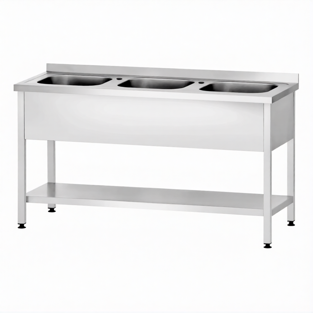 Ванна моечная ВМЦп 860х1800х700 3 м/о 300х500х500, борт, отв. д/смесит.