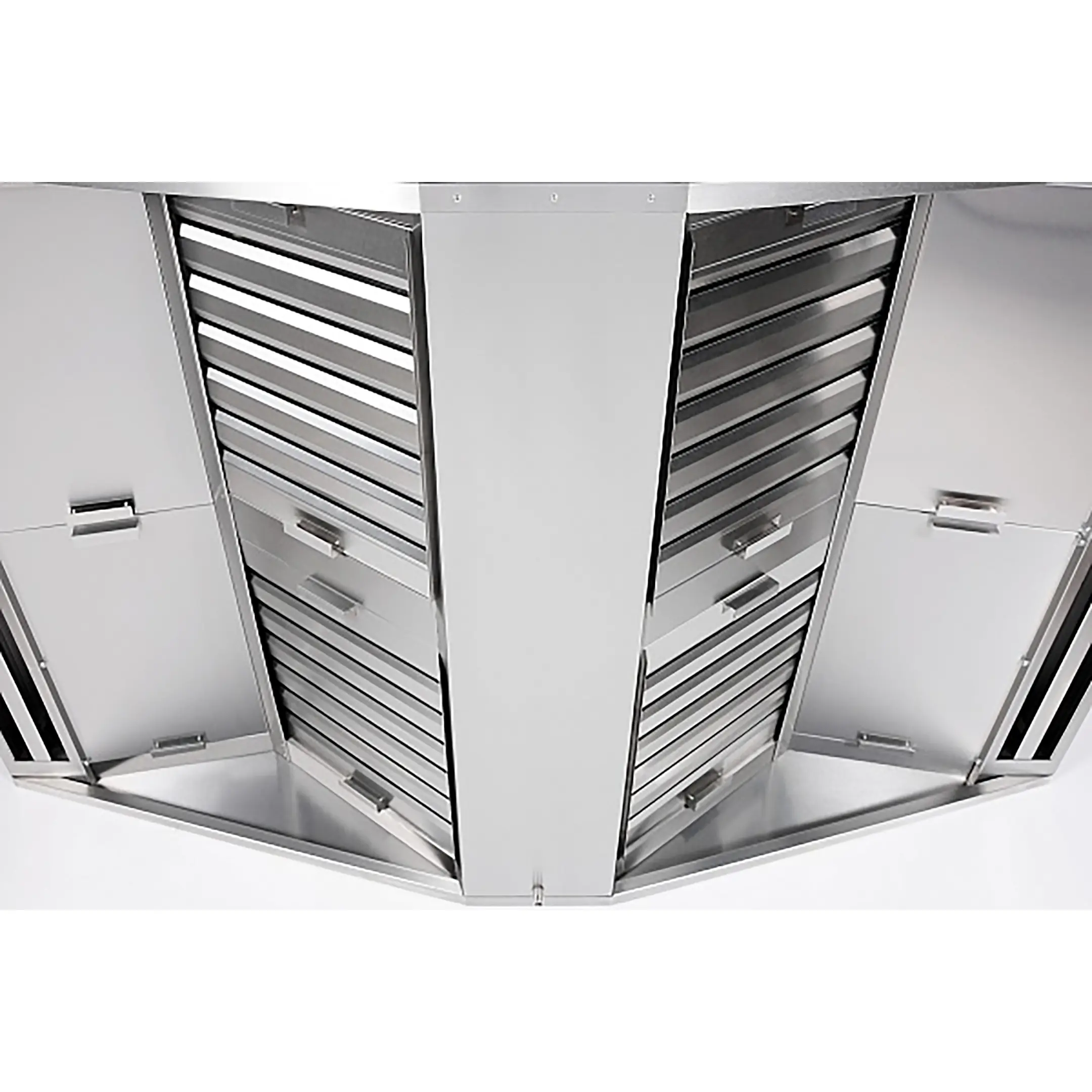 Оборудование подвешивают над тепловым оборудованием: плитами и пекарскими шкафами, жарочными поверхностями, грилями и фритюрницами.