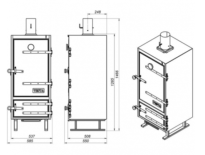 Коптильня Vesta "Model K" является самостоятельным изделием, способным работать на углях (дровах) и, при замене жаровни на электрическую или газовую одноконфорочную плитку, - на электричестве или газе.