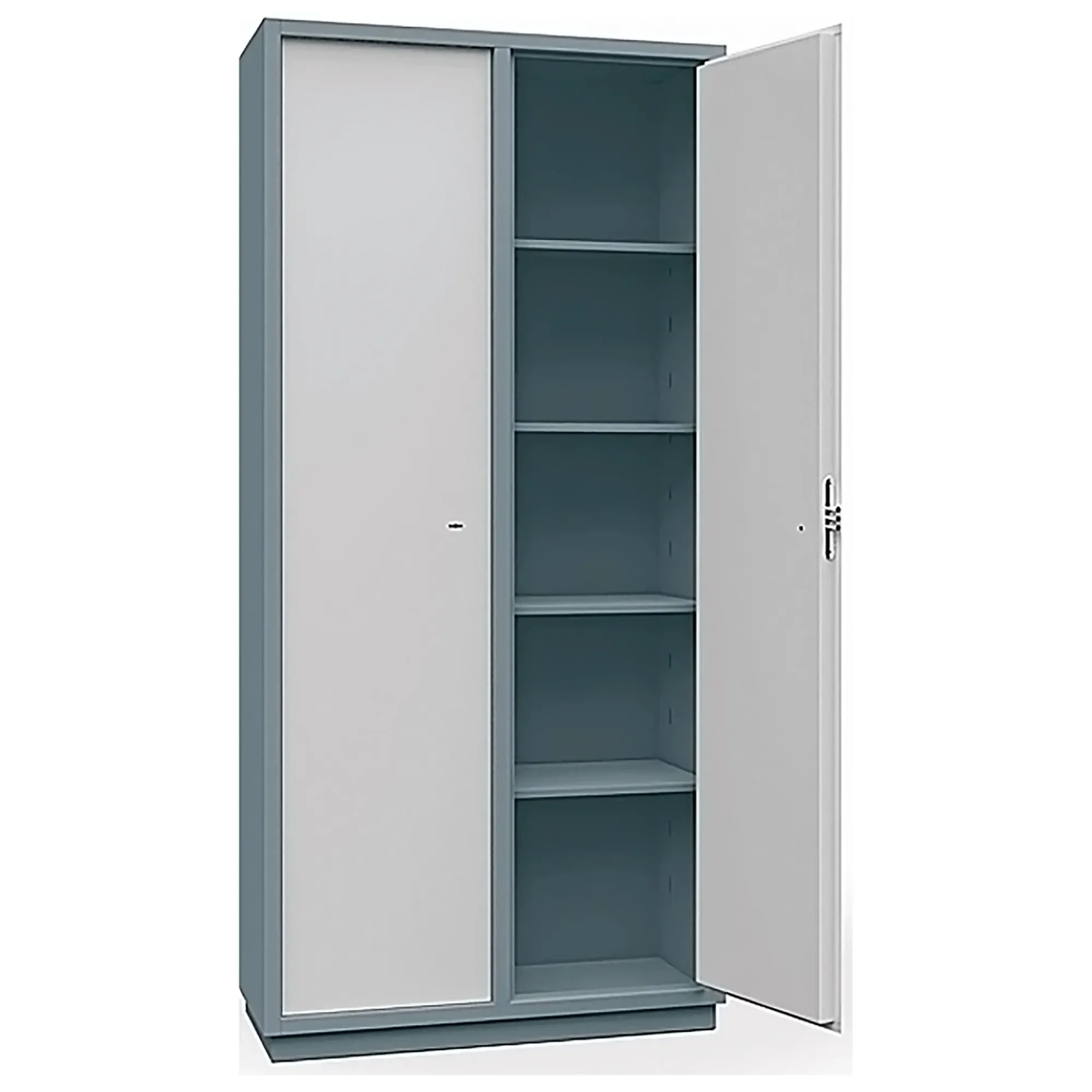 • Вся линейка бухгалтерских шкафов окрашена в два цвета: корпус - RAL 7011, дверь — RAL7035.