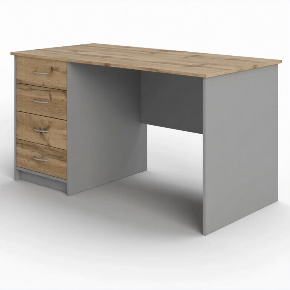 Стол рабочий СрТ-15 (1600х600х750) с тумбой (корпус ЛДСП серый, столешница ЛДСП дуб вотан) предназначен для оснащения кабинета врача в медицинских учреждениях, кабинетов лабораторий.