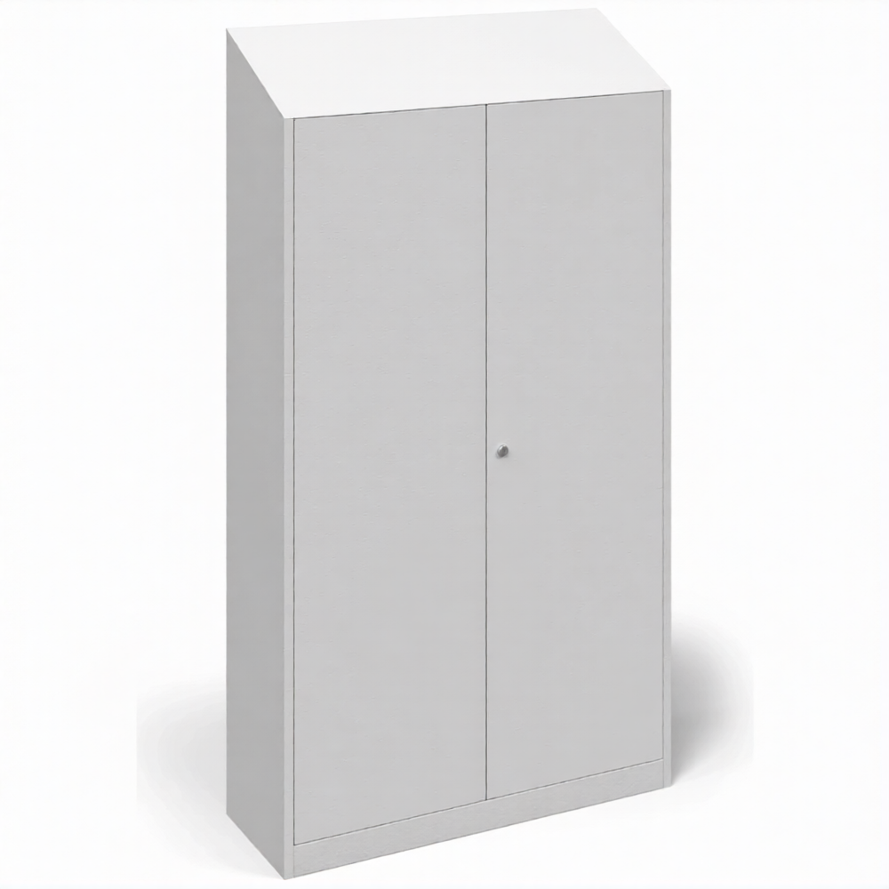 - Специализация для кислорода и наружной установки — шкаф предназначен именно для хранения кислородных баллонов, что учитывает повышенные требования к пожарной безопасности при работе с окислителем. Наклонная крыша предотвращает скопление снега, воды и мусора наверху, обеспечивая долговечность конструкции и удобство обслуживания.