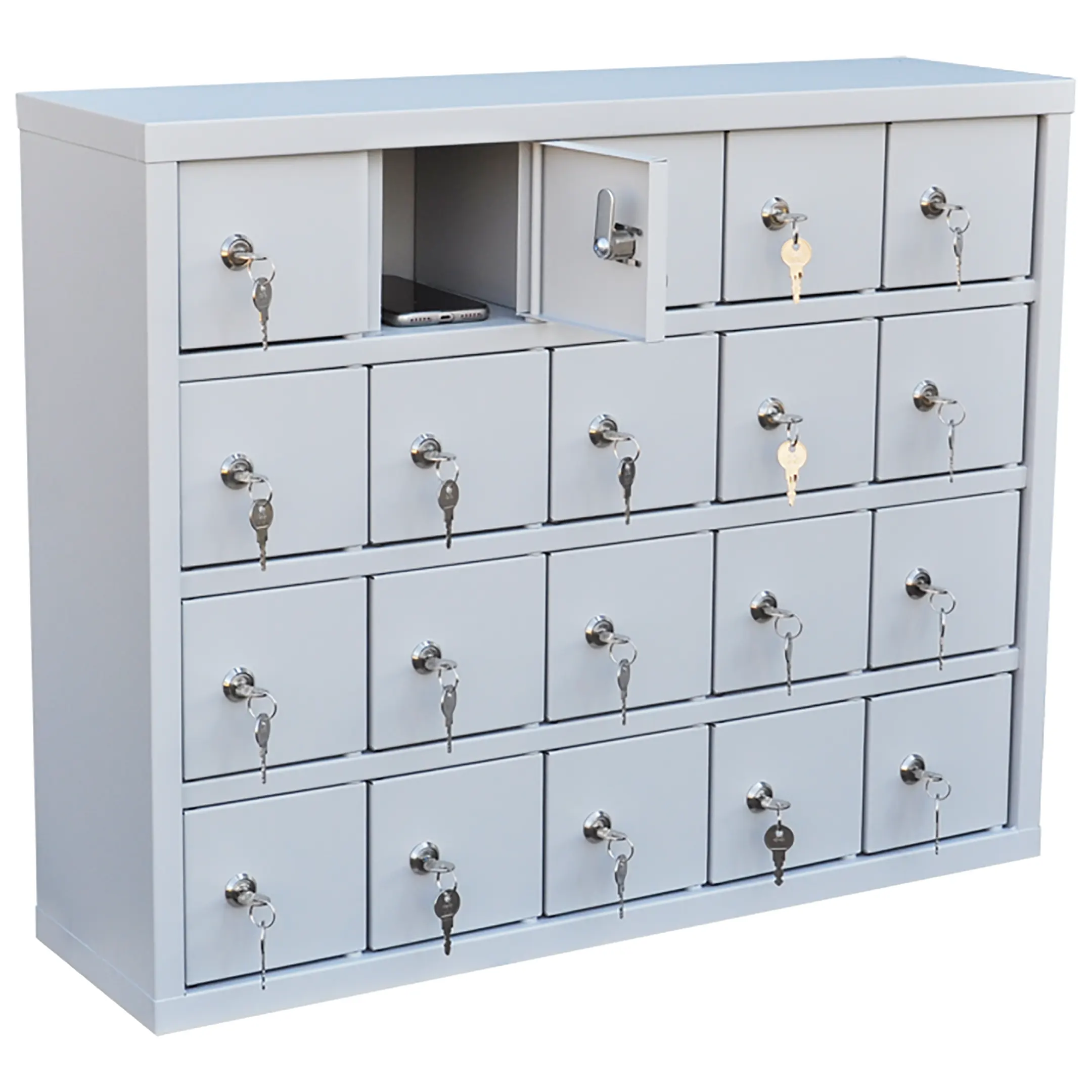 Шкаф для мобильных телефонов ШДМ-20 — это компактное и практичное решение для организованного хранения мобильных устройств в учебных классах, офисных отделах, переговорных комнатах и других помещениях с ограниченным пространством. Модель обеспечивает надежную защиту личных гаджетов, помогая поддерживать порядок, дисциплину и концентрацию внимания во время занятий, совещаний или работы.
