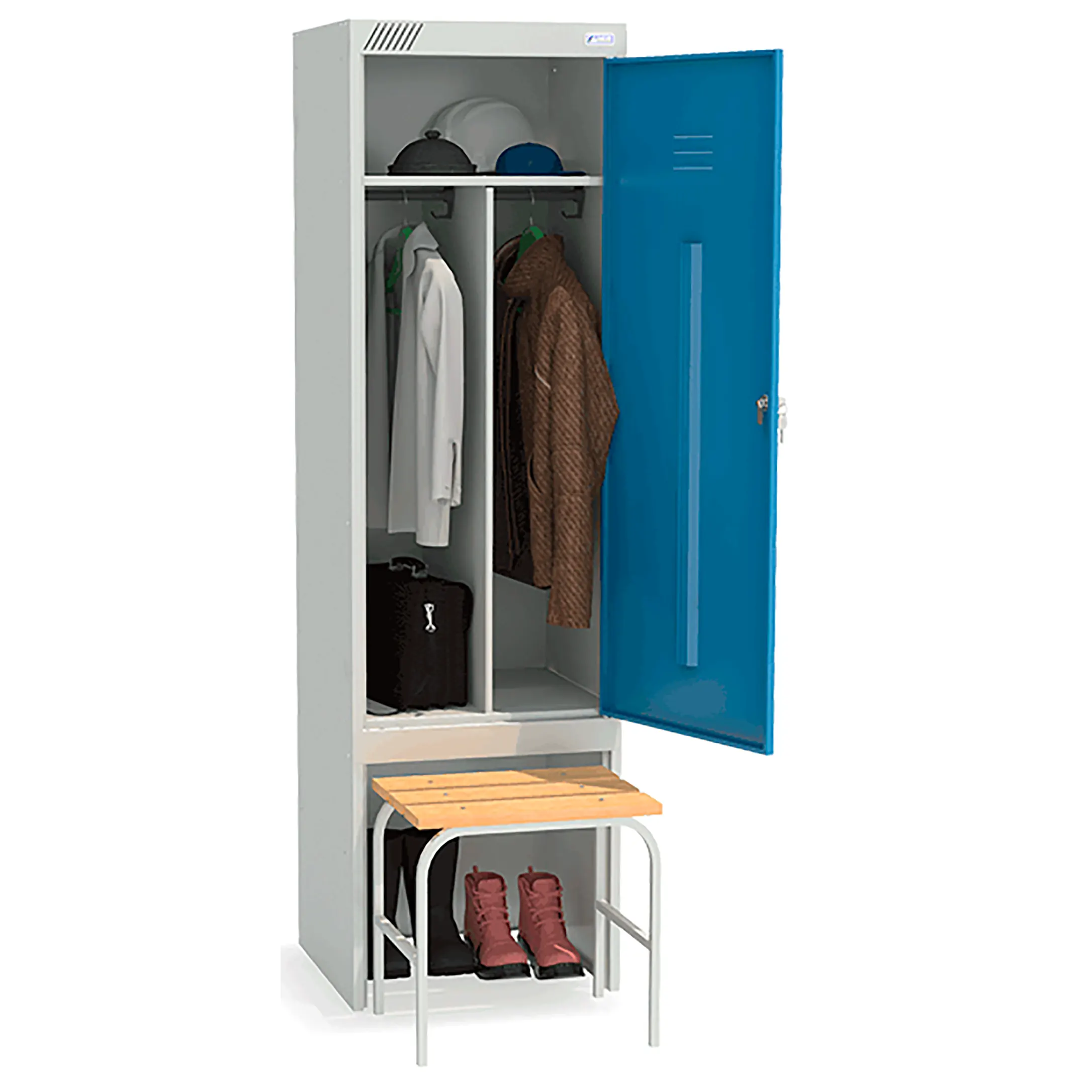Металлический шкаф для одежды ШРЭК-21-530 ВСК предназначен для хранения сменной одежды в офисных, производственных и спортивных помещениях.