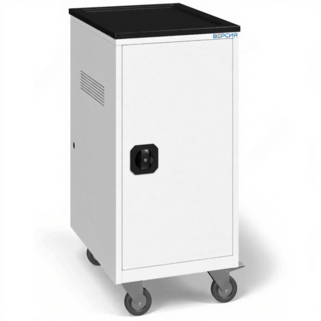 Тележка для хранения и зарядки 14 ноутбуков (17,3 дюймов) с электросхемой — это специализированное и надежное решение для организации мобильного рабочего пространства, оснащенного ноутбуками увеличенного формата для профессиональных задач. Модель представляет собой защищенную мобильную тележку с интегрированной системой электропитания, рассчитанную на 14 ноутбуков с диагональю 17,3 дюйма. Она обеспечивает комплексную защиту, удобную транспортировку и гарантированную синхронную зарядку всего парка мощных устройств, используемых в сферах дизайна, программирования, инженерии и науки.