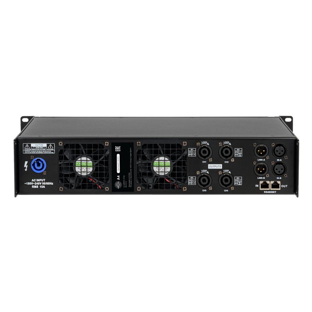 4-канальный усилитель с DSP процессором, 2 входа / 4 выхода, 4х1300 Вт / 8 Ом, 8,5 кг